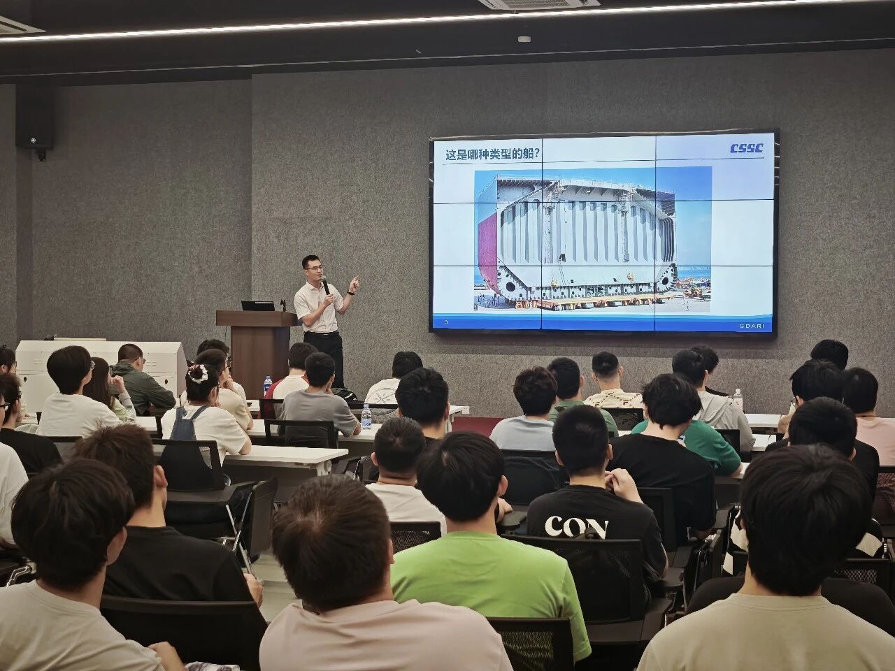 ▶ 在武汉,武昌造船团委将前沿知识送入高中校园。设计院博士为新洲一中的学生们带来“新能源与新能源船舶发展”讲座,从“双碳”目标到能源迭代,深入浅出的讲解为学子们开启了一段深蓝科技之旅。