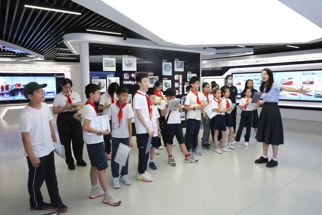▶ 七一一所与中学联合开展主题研学,让学生走进实验室与生产车间,近距离感受船舶动力技术创新,其精心打磨的系列科普课程《我心中的大船》《抓住二氧化碳》《咖啡杯里的科学奥秘》等还融入了区域“大思政课”实践教育。