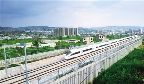 6月15日,宝兰高铁试验列车驶过甘肃秦安县城区。 李琛奇摄