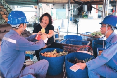 南方电网广东中山坦洲供电局辖区内有两万多亩生态果园,安全可靠供电保障农民喜获丰收。