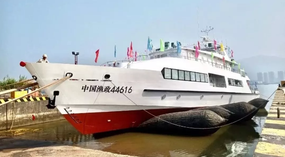 11月11日由广州船舶及海洋工程设计研究院自主研发设计的新一代海洋指挥公务船顺利下水。该型船总长42.5米,型宽7.6米,型深3.1米,排水量160吨,在安全、防腐、环保等方面均应用了不少新技术,交付后主要用于执行粤港澳大湾区海域的海洋和渔业行政管理指挥、监督检查等任务。