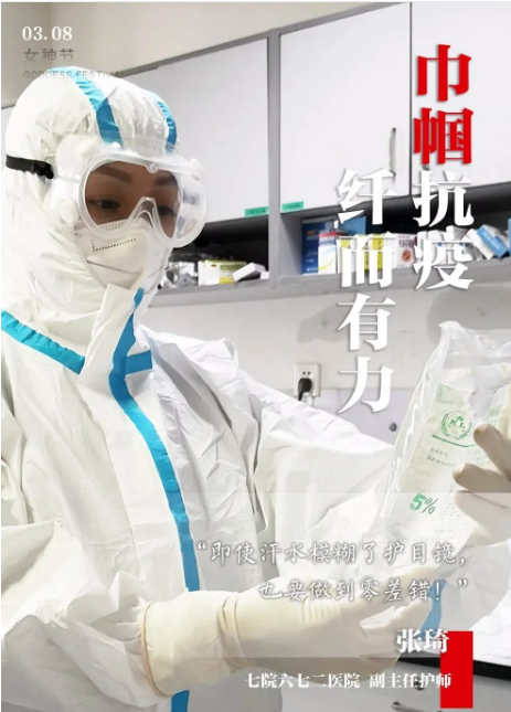 张琦,现为六七二医院感染三科临时党支部党员,感染三科护士长。她在1月26日,湖北六七二中西医结合骨科医院被征为“新冠肺炎”定点收治医院时,第一时间写下请战书上阵一线。虽然骨折尚未痊愈,仍带领全科护士投入到紧张而又忙碌的病房改造准备工作中,搬运设备、物资,常常加班到深夜,以实际行动展现了医者大美和巾帼大爱的高尚品格及别样风采!