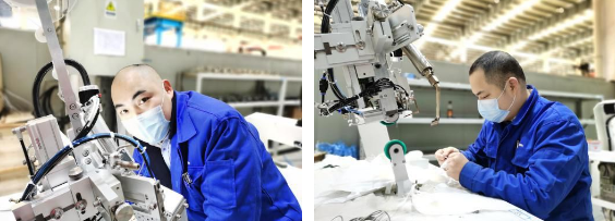 装配调试团队快马加鞭地开展设备总装总调,技术团队全力协同配合。48小时,2台压条机样机的装配顺利完成。按照预设的温度和速度,按下“送带、剪带”键,踩下踏板,无纺布经过滚轮,自动平整粘合……“成功了!成功了!”现场的人员欢呼起来。