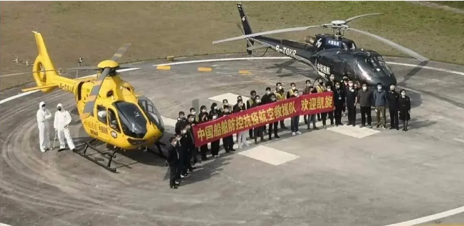 3月18日,随着两架直升机缓缓降落在上海金桥直升机基地,中国船舶防控抗疫航空救援队在圆满完成湖北抗疫任务后凯旋!2月5日,在中国船舶集团系统工程院的统一部署下,海丰通航与中瑞通航组成中国船舶防控抗疫航空救援队,先后投入三架直升机,赴武汉、温州,辗转仙桃、宜昌、黄冈等地,历时四十天,飞行近百小时,转运抗疫急救物资十多万件,充分发挥了直升机灵活、高效的优势,成为防控抗疫行动中重要的空中力量。