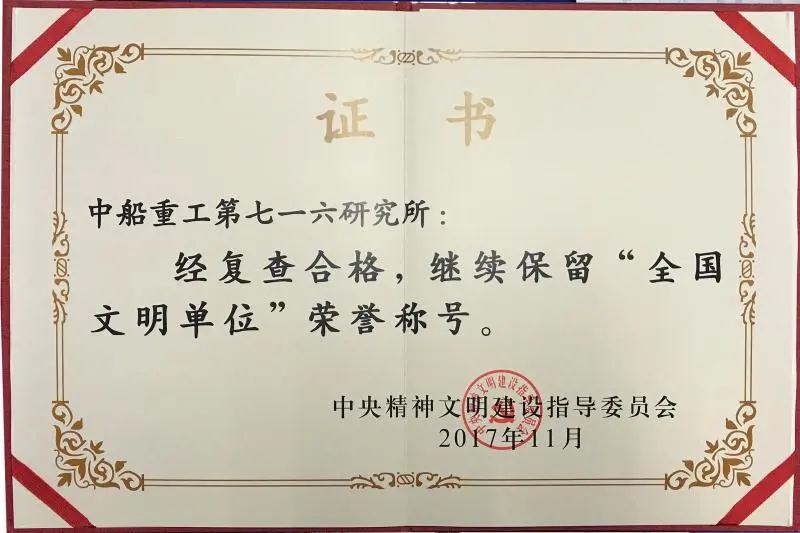 55年里,孕育了“团结、攻坚、开拓、奉献”的七一六精神,形成了“人本、责任、团队、进取”的核心价值观,以及“团结攻坚、开拓奉献,严谨求实、快捷高效”的七一六作风,创立了特色军工文化体系,七一六人过硬的作风得到了军队和企业客户的一致认可。七一六所先后荣获了“全国文明单位”“全国实施卓越绩效模式先进企业”“中央企业先进集体”“全面质量管理推进40周年杰出推进单位”“新中国70年丝袜av建设优秀单位”等荣誉称号。