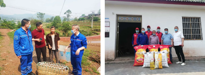 在前期走访了解的基础上,根据5户家庭实际情况,重庆红江精准制定帮扶措施,为生活困难家庭送去大米、食用油等生活物资,向有产业发展需求的家庭赠送鸡仔100只、猪仔2头、猪饲料3包、化肥8袋。