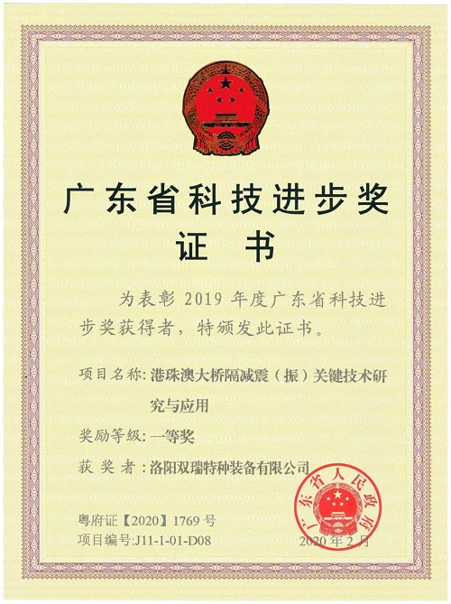 双瑞特装与港珠澳大桥管理局等9家单位,历时10年联合攻关,创建了超长复杂跨海桥梁减隔震新体系,成功应用于港珠澳大桥,抗震性能从抗7度提高到抗9度,造就了世界超长跨海大桥的减隔震示范工程。