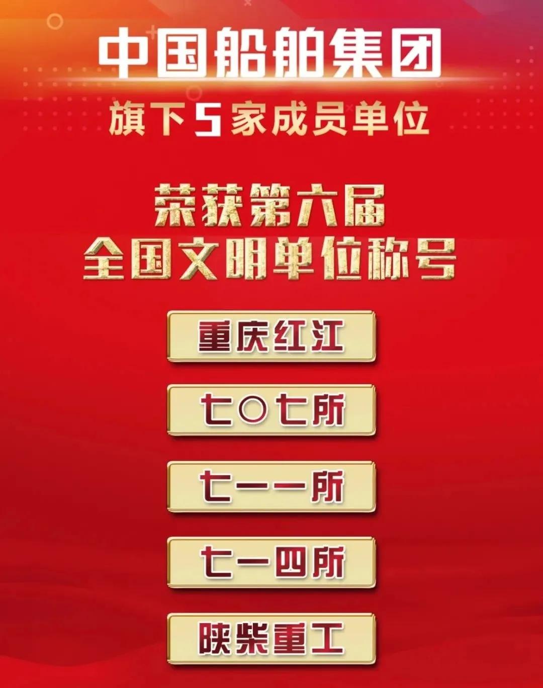 近日,中央精神文明建设指导委员会印发文件,明确了复查确认继续保留“全国文明单位”荣誉称号的单位。 中国船舶集团共17家成员单位顺利通过复查,蝉联“全国文明单位”称号,它们分别是:江南造船、渤船集团、风帆公司、汾西重工、七院、七〇一所、七〇二所、七〇三所、七〇四所、七〇五所、七〇八所、七一六所、七一九所、七二二所、中船九院、上海船院、中国海装。