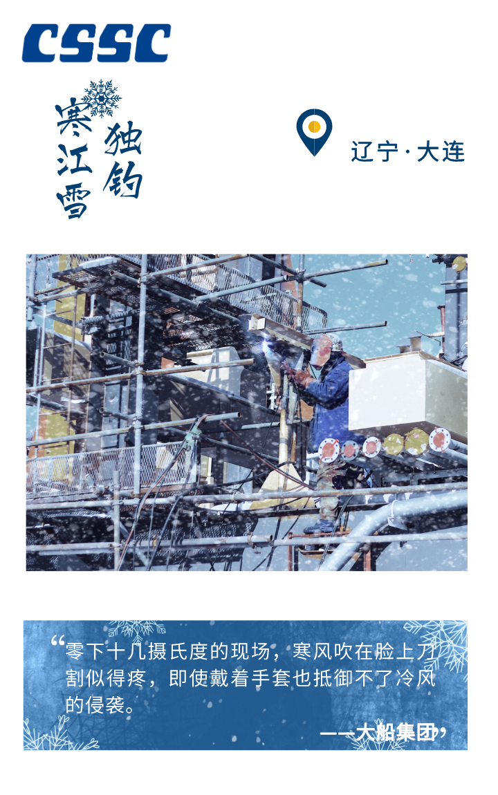 -5℃、-10℃、-20℃ …… 在这个不断刷新寒冷指数的冬季 从未缺席中国船舶人劳作的身影 皎洁的白雪、火红的炉膛 呼啸的海风、疾行的足音 奏响了冬季船舶人的 冰与火之歌