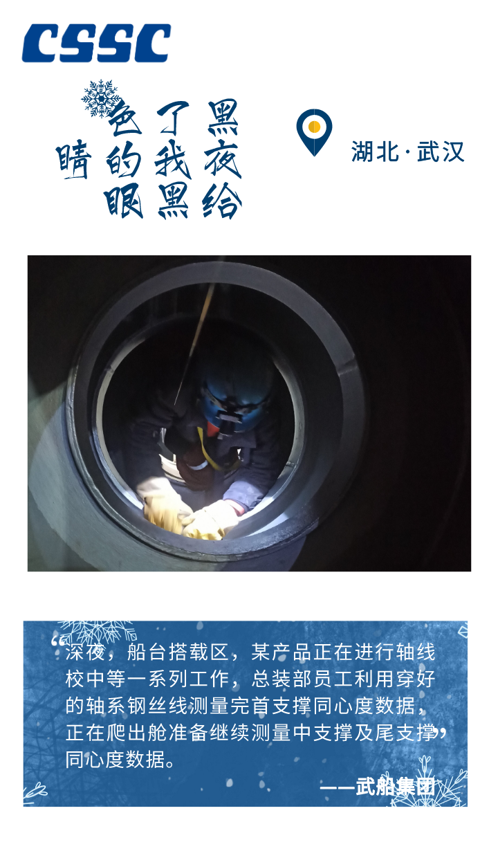 晨光熹微中启程 夜色如墨时坚守 从北至南 这群奋进的船舶人 将冬日热血洒在祖国大地 谱写了一曲昂扬的劳动者之歌