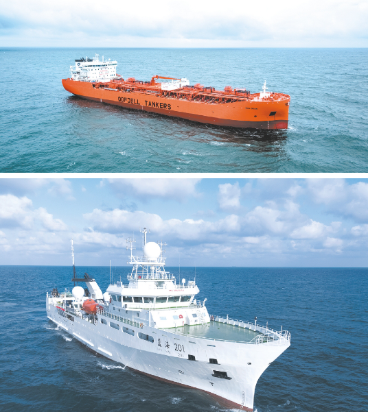 ——正在建造的18600立方米LNG加注船V2.0版,应用MARK Ⅲ FLEX薄膜型液货围护系统,突破了薄膜型液舱承受晃荡冲击载荷的挑战,可实现任意液位的装载运行。与国外产品相比,该船的加注容量更大、加注速率更快、服务流程更全,整体技术达到国际领先水平。
