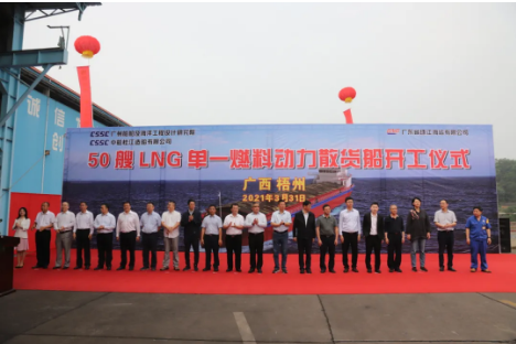 3月31日,中国船舶集团旗下广州船院协同中船广西所属桂船公司,为珠江海运有限公司设计建造的液化天然气(LNG)动力散货船正式点火开工。