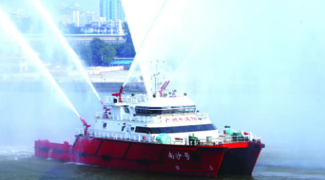 2010年12月28日,广船国际为南沙区建造的“南沙号”消防船投入使用。“南沙号”消防船总长46米,型宽15米,排水量达到680吨,航速可达32.4公里/小时,共设置有6门水炮。其中,2门主炮射程可达到150米,4门副炮射程可达到130米;还设置了全船水幕保护系统,在火灾现场可有效保护自身安全。“南沙号”消防船是当时国内最大双体专勤消防船,大大增强了对船舶火灾、石化码头、油库火灾的扑救能力。