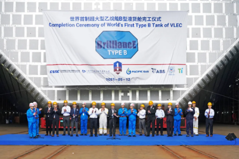 5月12日,中国船舶集团旗下江南造船举行了世界首制99000立方米超大型液化乙烷运输船 (VLEC) 首个B型液货舱完工仪式,标志江南造船99000立方米VLEC建造实现关键技术突破,其自主研发的“BrilliancE®”货物围护系统实现工程化和节拍化生产。