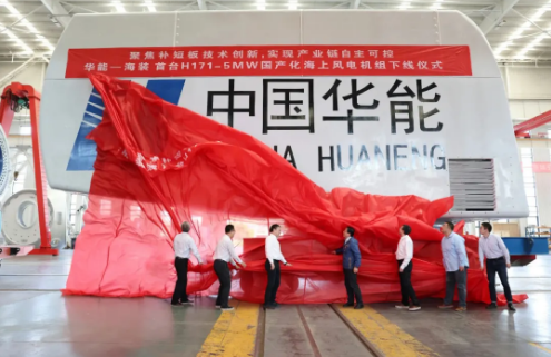 5月22日,中国海装与中国华能联合研制的国产化海上风电机组成功下线。该机组: