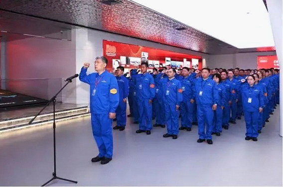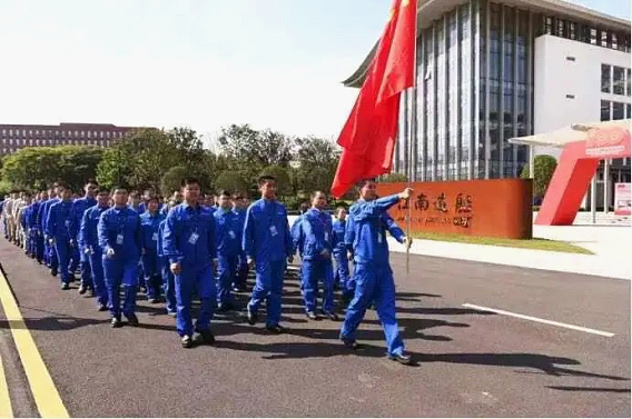 在庆祝中国共产党成立100周年之际,100名来自中国船舶集团的产业工人新党员在江南造船博物馆集中进行了入党宣誓。