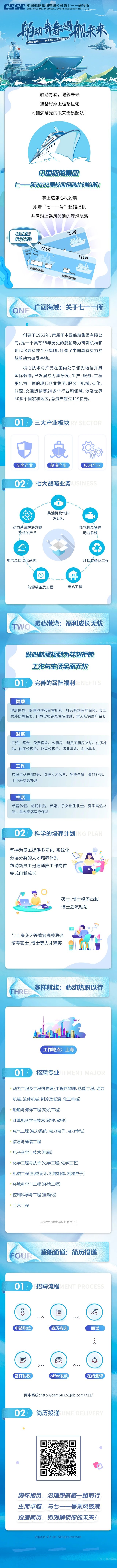 想知道一艘船舶如何从图纸到实船吗? 想揭开中国具有实力的船舶动力研发基地的神秘面纱吗? 想加入军工央企大家庭吗? 心动不如行动,中国船舶集团七一一所2022年校园招聘开始了。船票已发,“职”等你来 一起“舶”动青春遇“舰”未来!