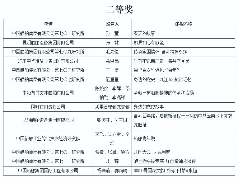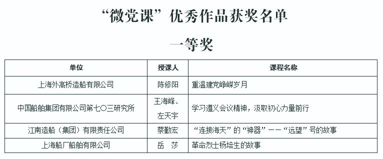 除一等奖的“微党课”作品,其他获评优秀的“微党课”和专题党课可以登录集团公司党校“中船e学”平台主页