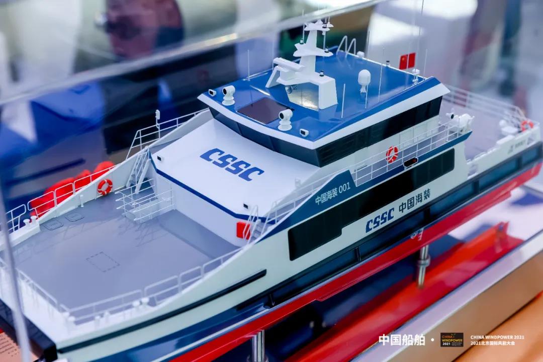 在本届风能大会上,中国海装与远舟科技联合设计制造的国内首艘30米级专业风电运维船发布。投运后,该船将与中船海工101海上风电安装平台一道,为海上运维“保驾护航”。
