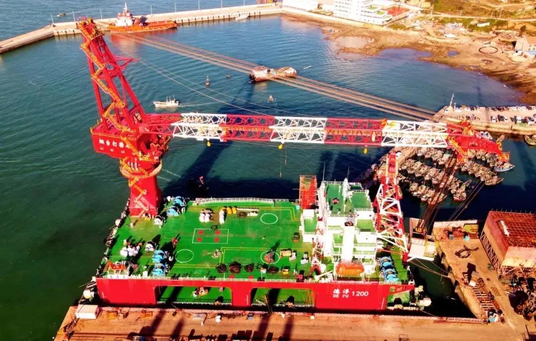 海西重机为“德浮1200”提供最主要的起重设备,起重能力达1200吨,相当可同时吊起800辆小汽车的总重量,全回转起重能力达1000吨。起重设备将服务“德浮1200”用于近海及浅水水域的风机安装施工及打捞起重作业以及无限航区拖航。