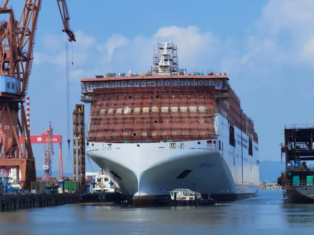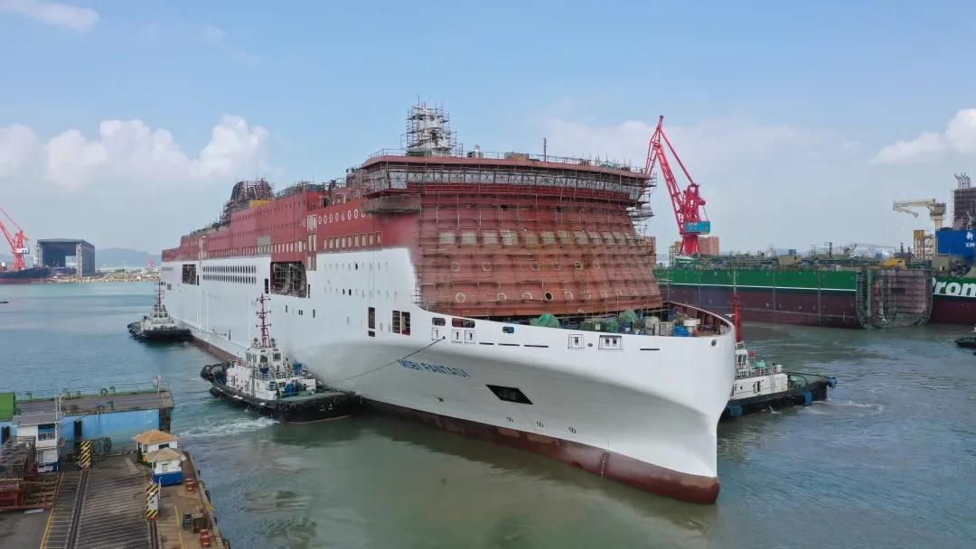 近日,广船国际为意大利Onorato航运集团旗下Moby Line航运公司建造的2500客/3800米车道豪华客滚船首制船实现出坞,建成交付后将成为全球最大的豪华客滚船。
