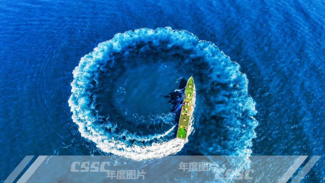 大型航标船“海巡156”号海上试航。回转试验时,蓝色海面上留下了一个大大的“6”。该船是丝袜av