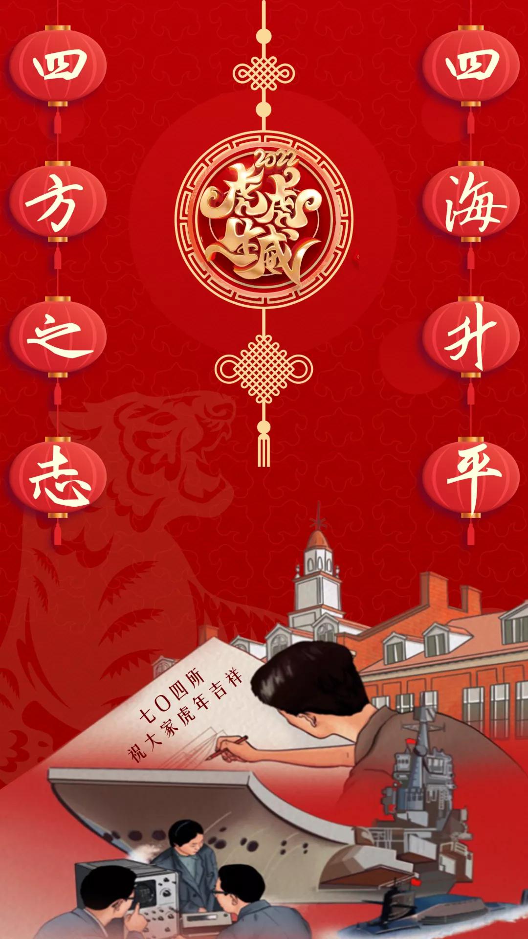 以中国红为主色调,运用传统剪纸手法结合镂空设计,寓意揭开虎年新篇章,映入眼帘的舰艇乘风破浪、浩浩荡荡,传递系统工程研究院/中船电科建设强大海军的信心和决心!