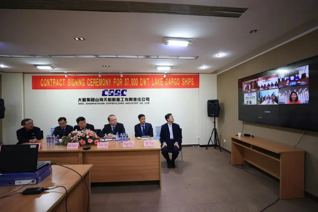 6艘16000TEU集装箱船签约现场(上图),4艘37000吨大湖型散货船签约现场(下图)。