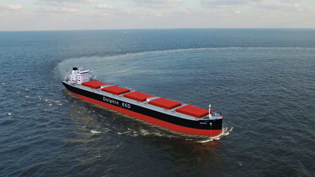 该型船采用中国船舶集团旗下上海船院的新一代船型设计,可航行于国内近海航区及长江南京以下各港口,在吃水受限航道可实现载货量最大化,而且该型船货舱舱容大,可满足绝大部分散装货品。