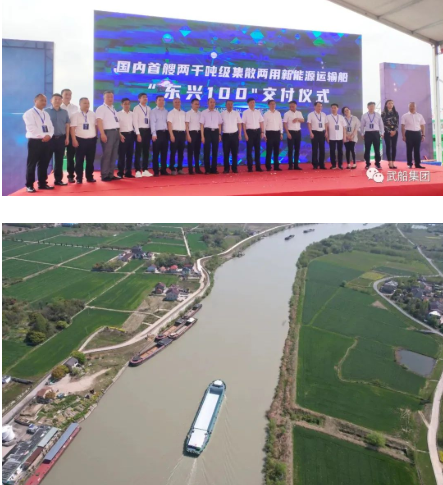 6月20日,中国船舶集团旗下武船集团设计的国内首艘2000吨级集散两用新能源运输船“东兴 100”,在浙江省湖州市长兴县顺利完成交付并投入运营。