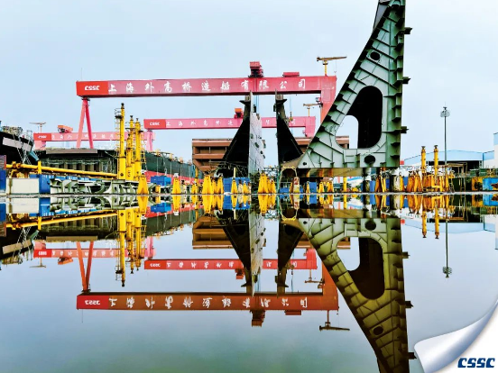 蔚蓝的天空下,中船澄西建造的45号82000吨散货船静静矗立,等待着下水时刻。