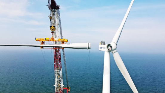 中国海装为平价海上风电定制化设计的首款平台机型实现量产装机,这是自去年该平台首台样机下线后的又一重要里程碑,再一次打破亚洲最长叶片装机记录。