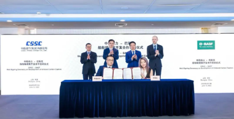 6月13日,中国船舶集团旗下中船动力(集团)有限公司与巴斯夫欧洲公司,在2023年上海国际碳中和技术、产品与成果博览会上,正式签署关于共同开发船舶碳捕集系统战略合作谅解备忘录。此次合作将发挥中船动力在船舶动力研发、制造与服务领域的领先优势,以及巴斯夫前沿专业的气体处理技术,加速开展船舶碳捕集的商业化应用,携手助力全球航运业绿色发展。