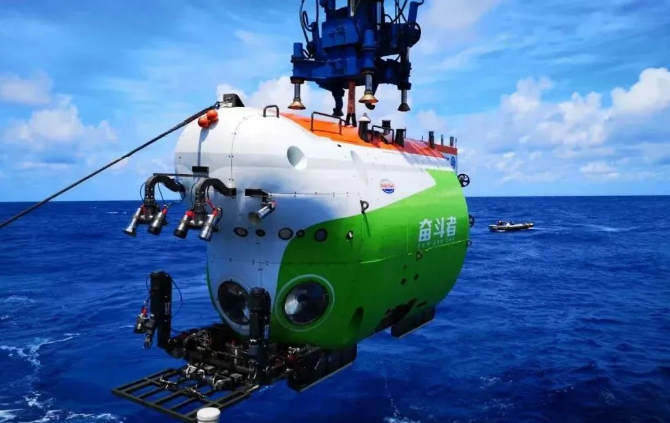 2020年,“奋斗者”号在马里亚纳海沟成功坐底10909米,创造中国载人深潜新纪录。