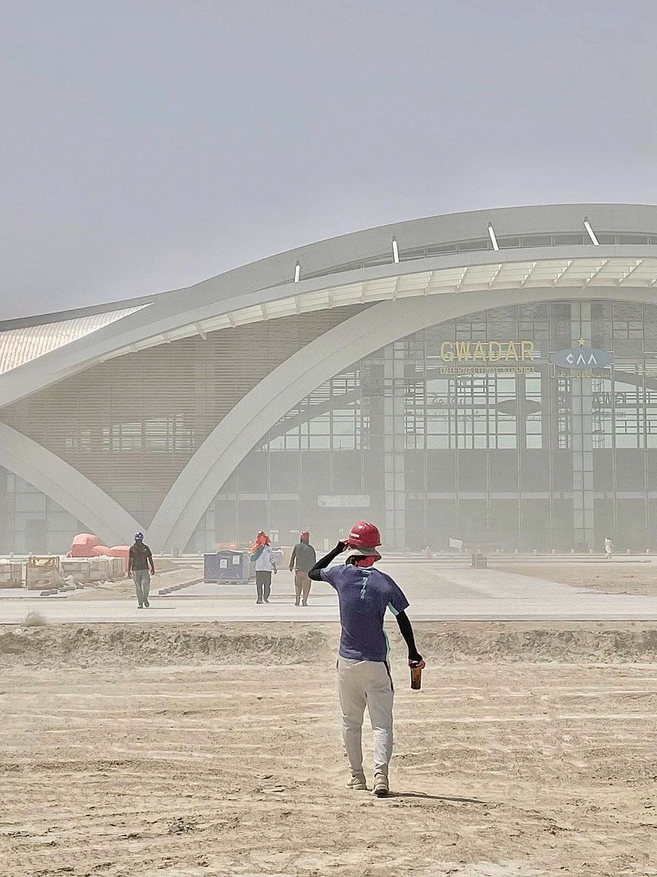 昆船公司——员工每天冒着40多度的高温,忙碌在巴基斯坦瓜达尔新机场建设项目现场。