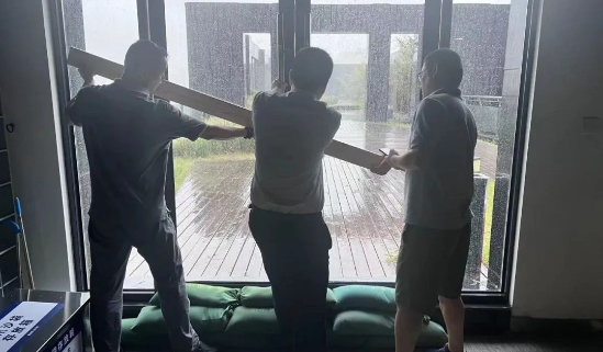 中船九院组织华船物业针对办公大楼每个楼层门窗关闭情况进行“地毯式”检查,对重点区域进行加固,安排人员巡查,落实办公楼区域应急值班人员24小时待命。台风来袭期间,中船九院针对受大风大雨影响的重点部位再组织有效加固。