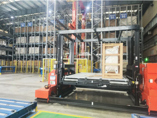 该系统单托盘举升能力达到6吨,适用于各类大、重、分布不均、形状各异物资的立体存储。采用业内首创的驶入式自动导向车作为移载动力,通过自主研发的重型堆垛装备与智能控制系统联动,能够在复杂的立体仓库环境中准确定位目标并快速平稳完成作业任务。同时,通过引入现代物联网和数字孪生等先进技术,实现了仓储物流的智能可视化运营。