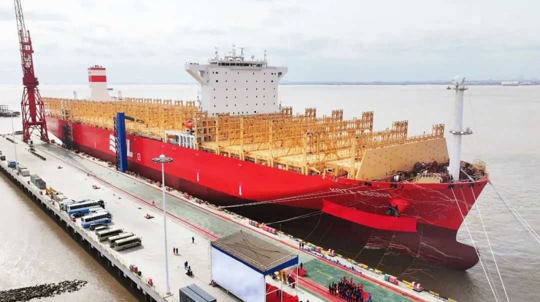 该型船是江南造船自主研发设计的“鲲系列”(KUN-14N)集装箱船,具备高效、绿色、节能环保等特点。它选用MARK Ⅲ型燃料舱,可同时兼容氨燃料;采用全球新一代智能控制废气再循环(iCER 2.0)系统双燃料主机,可以通过特定算法自动跟踪并动态调整空气和燃气比例,和以往机型相比,气体模式下的甲烷逃逸可降低50%,减少25%的二氧化碳排放。