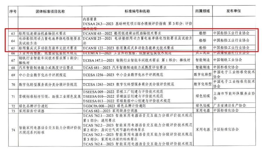 · 中船动力研究院有限公司牵头研制的T/CANSI 65—2022《船用低速柴油机曲轴技术要求》