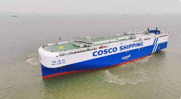 旗下广船国际联合中船贸易建造的7000车液化天然气(LNG)双燃料动力汽车运输船“汉江口”号举行命名交船仪式。据了解,该船交付后,首航次将从上海装载国产汽车奔赴智利、秘鲁、危地马拉等国家。