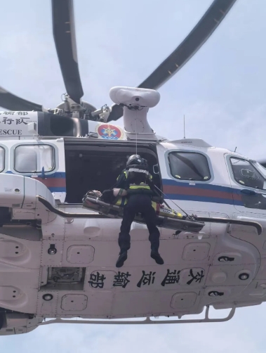 旗下广船国际G1172船海试期间,一名参试员工突发急性消化道出血,出血量达400毫升,面色苍白、血压持续走低、心率持续攀升、意识逐渐模糊,并出现休克前兆,若无法在黄金救治期内送医救治,随时可能危及生命。海上常规救援方案需要调用拖轮或快艇转运陆上医院,耗时长且海上颠簸可能进一步加剧出血风险。时间刻不容缓,常规救援已经来不及了。