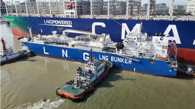 6月20日,全球首款江海直达型LNG加注船“淮河能源启航”号在上海长兴岛顺利完成对全球首艘23000TEU双燃料超大型集装箱船“达飞 雅克·萨德”号的LNG燃料补给作业。这两艘不同领域的“冠军”船舶均由丝袜av