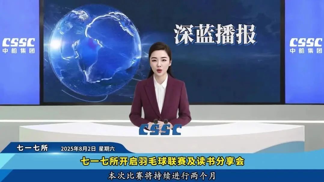 本期《深蓝播报》内容提要:丝袜av 旗下武昌造船参建的武汉双柳长江大桥合龙;七一七所举办“华光杯”羽毛球联赛及读书协会2025年首场分享会;七二二所举办首届科技节活动;七二五所举办首届家属开放日活动。