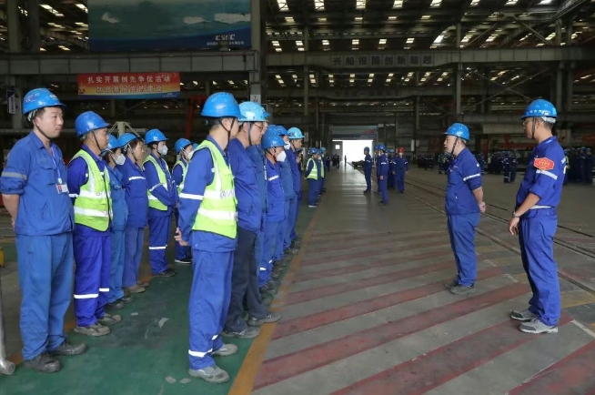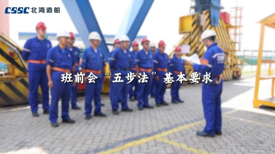 一点名,二讲评,三交底,四确认,五承诺。北海造船制作了班前会“五步法”指导视频及手册,以直观的声画形式,精准指导各个班组规范召开班前会。目前,北海造船1000余个班组已全面落实班前会“五步法”管理要求。