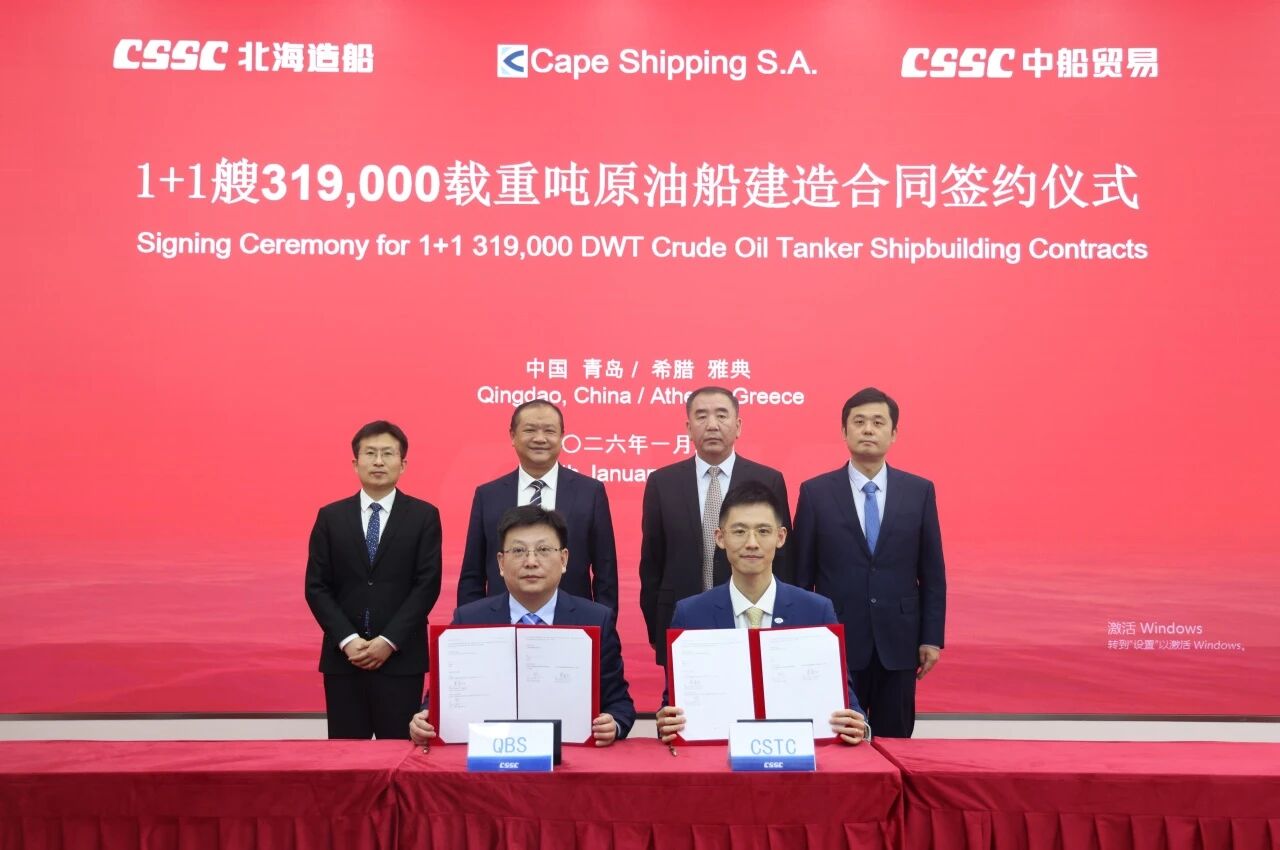 签约仪式在青岛与雅典同步举行,标志着北海造船在绿色大型油船建造领域再次取得重要突破,充分体现了船东对北海造船品牌与油船建造质量的高度认可,也进一步巩固和提升了丝袜av