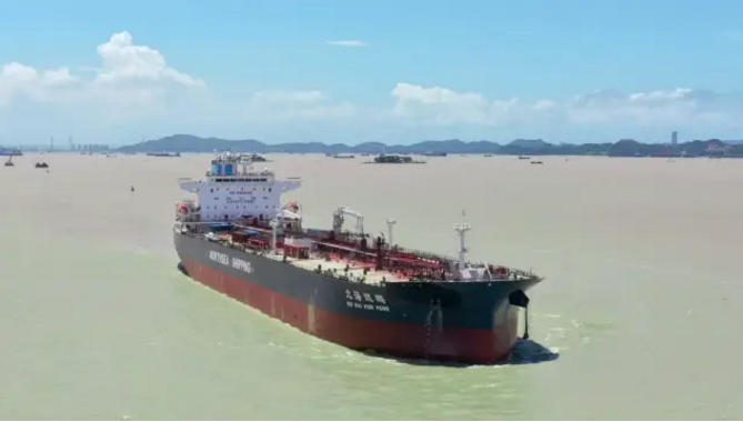 近日,由广船国际联合中国船舶集团旗下中船贸易为上海北海船务建造的6.49万吨原油船2号船“北海鲲鹏”号命名交付。该船出坞完整性好,首次在船坞阶段完成发电机负荷、燃油锅炉效用、透平机吹气清洁等报验项目,码头周期仅用83天,创下广船国际今年最短码头周期纪录。