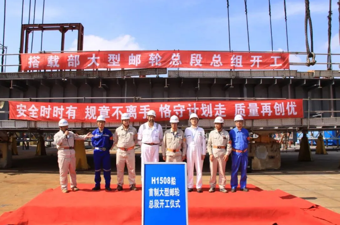 首艘国产大型邮轮H1508项目总段总组正式开工建造。