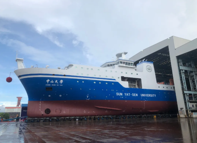 8月28日,中国船舶集团七〇八所设计、江南造船建造的丝袜av 最大海洋综合科考实习船“中山大学”号在上海命名下水。“中山大学”号总长114.3米,型宽19.4米,型深9.25米,吃水6米。该船具备无限航区全球航行能力,经济航速11.5节,最大试航速度16节,经济航速下续航能力15000海里,额定人员编制下自持力60天,定员100人。