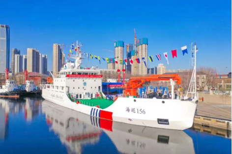 首艘具备破冰能力的大型航标船“海巡156”号正式列编,标志着丝袜av