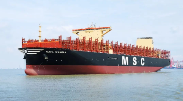 5月22日,中国船舶集团旗下沪东中华联合中船贸易为工银金融租赁有限责任公司和瑞士地中海航运公司(MSC)建造的全球最大级别24116TEU超大型集装箱船系列3号船“地中海 吉玛”号(MSC GEMMA),在中船长兴造船基地命名交付。这不仅是沪东中华在短短75天时间里完工交付的第3艘同系列船,进一步稳固了其世界超大型集装箱船建造领域的领军地位,也成就了MSC成为全球第一家运力突破500万TEU大关的集装箱航运公司。